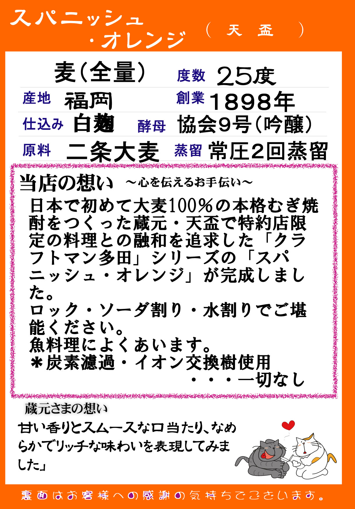 日本で初めて大麦100%の本格むぎ焼酎を作った蔵元・天盃で、料理との融和を追求した「クラフトマン多田」 特約店限定の商品です。